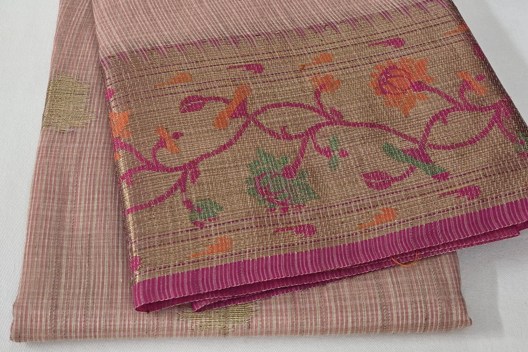 We recommend dry cleaning your saree. Store in a clean and dry place. To prevent dust accumulation, change the folding of the saree once in a few months.