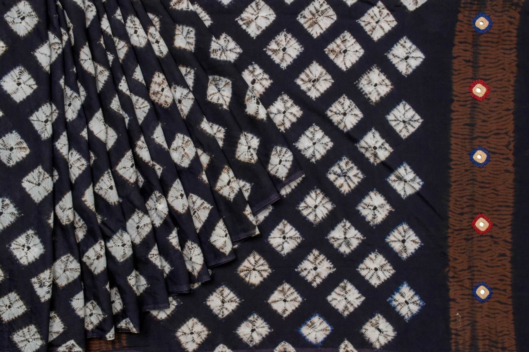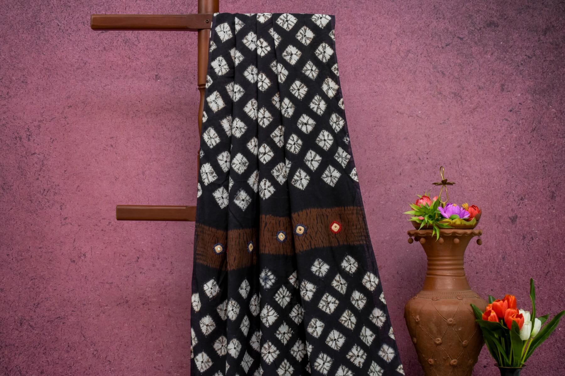 Effortlessly elegant and versatile, our black bandhani cotton saree is a must-have for any wardrobe. Made from high-quality cotton, it offers a comfortable and breathable fit, perfect for any occasion. Embrace its timeless beauty and make a statement with this traditional Indian garment.