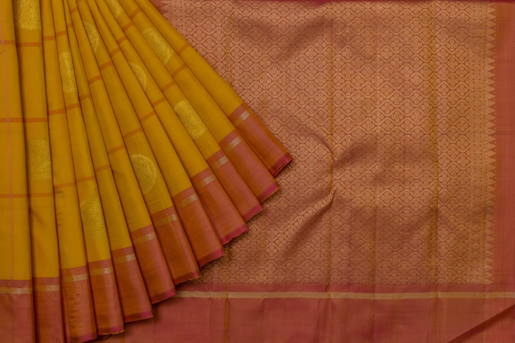 Elevate your wardrobe with our mustard yellow Kanjivaram Silk Saree SS5488. Made from high-quality silk, this saree exudes elegance and grace. Its rich color and intricate detailing make it a perfect choice for any occasion. Experience the timeless beauty and luxurious texture of Kanjivaram silk with this exquisite saree.