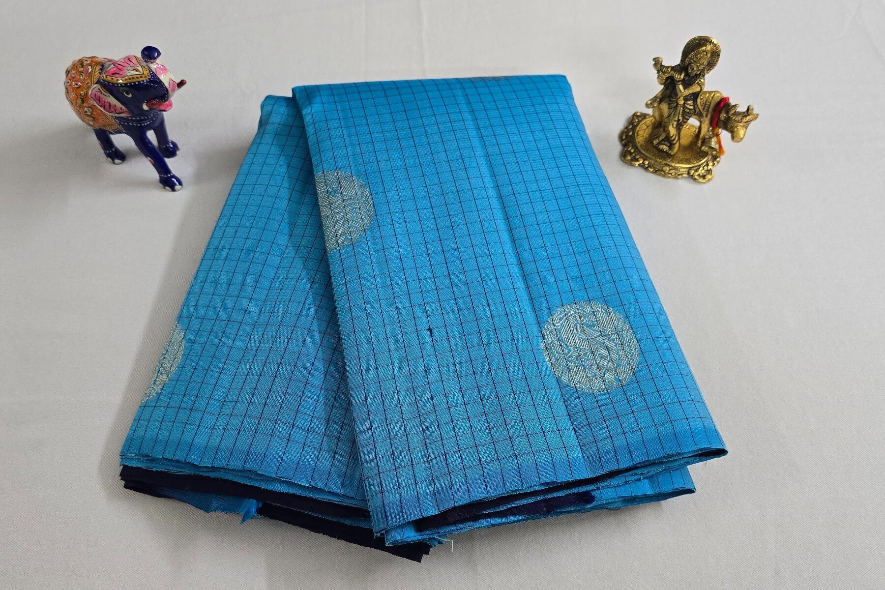 This light blue Kanjivaram silk saree (SS5557) is a staple for any wardrobe. Crafted from luxurious silk, it offers a timeless and elegant design that is perfect for any occasion. The lightweight fabric provides comfort and breathability, making it ideal for all-day wear. Elevate your style with this beautiful saree.