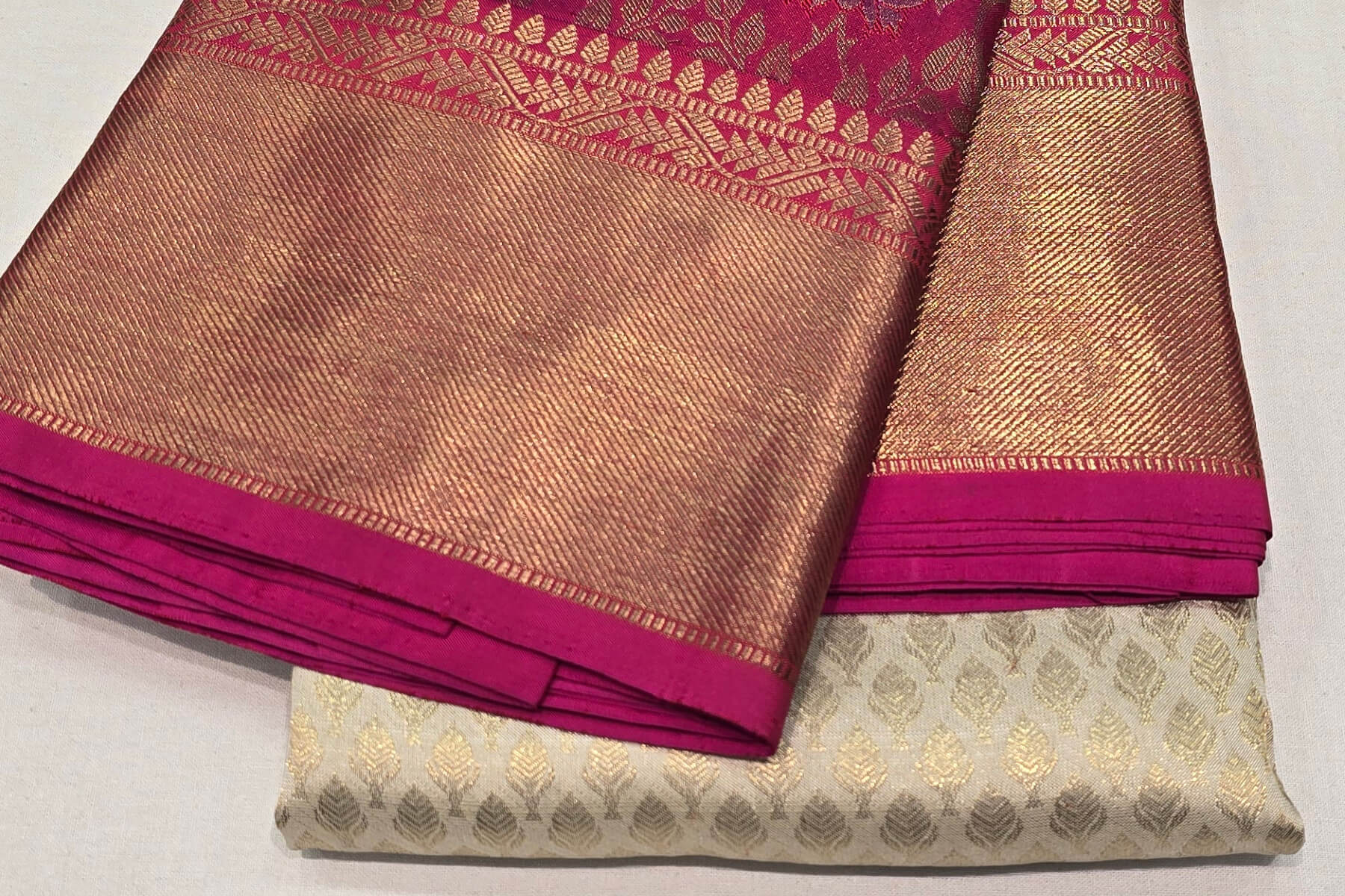 We recommend dry cleaning your silk saree. Store in a clean and dry place. To prevent dust accumulation, change the folding of the saree once in a few months.