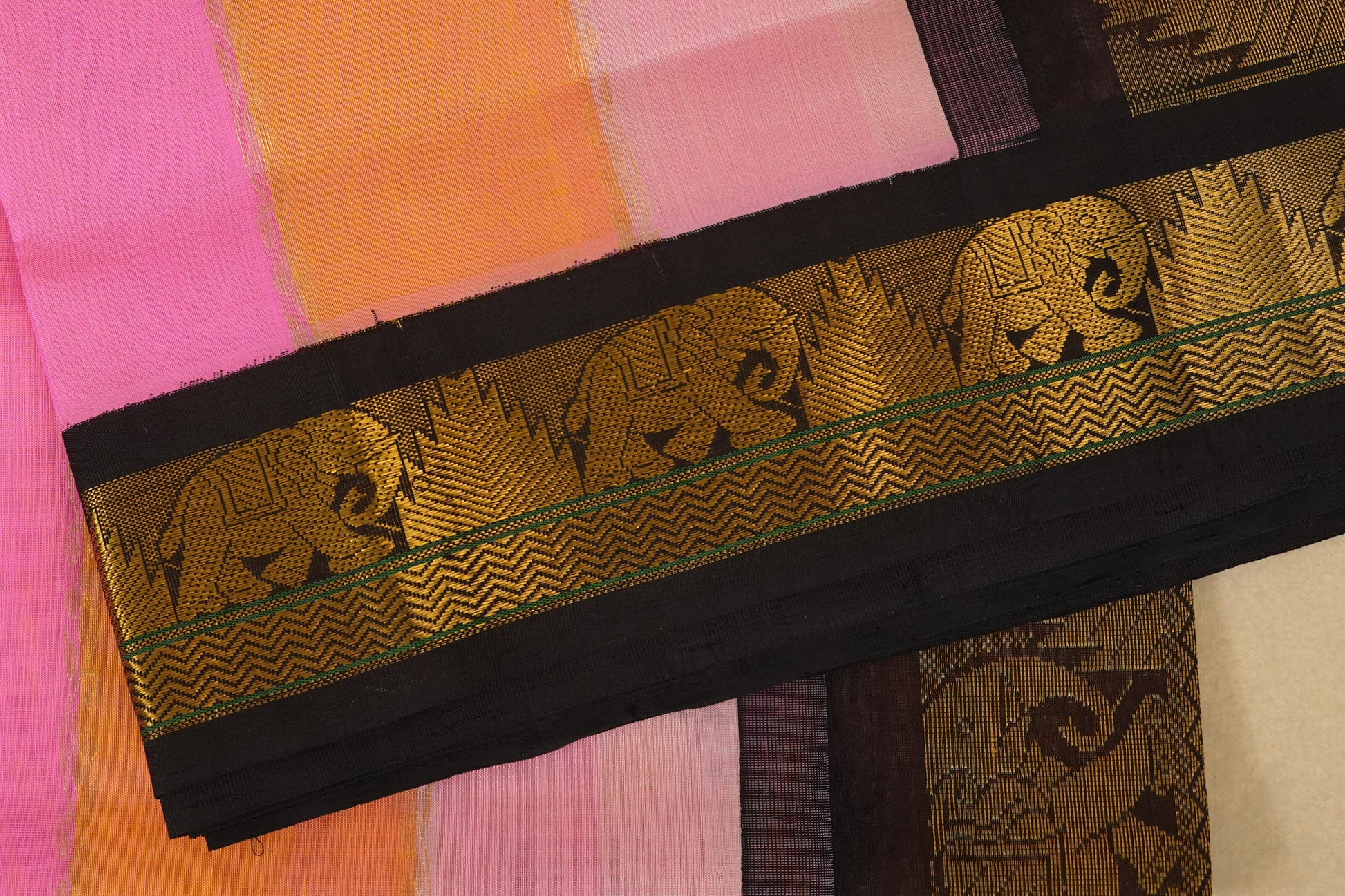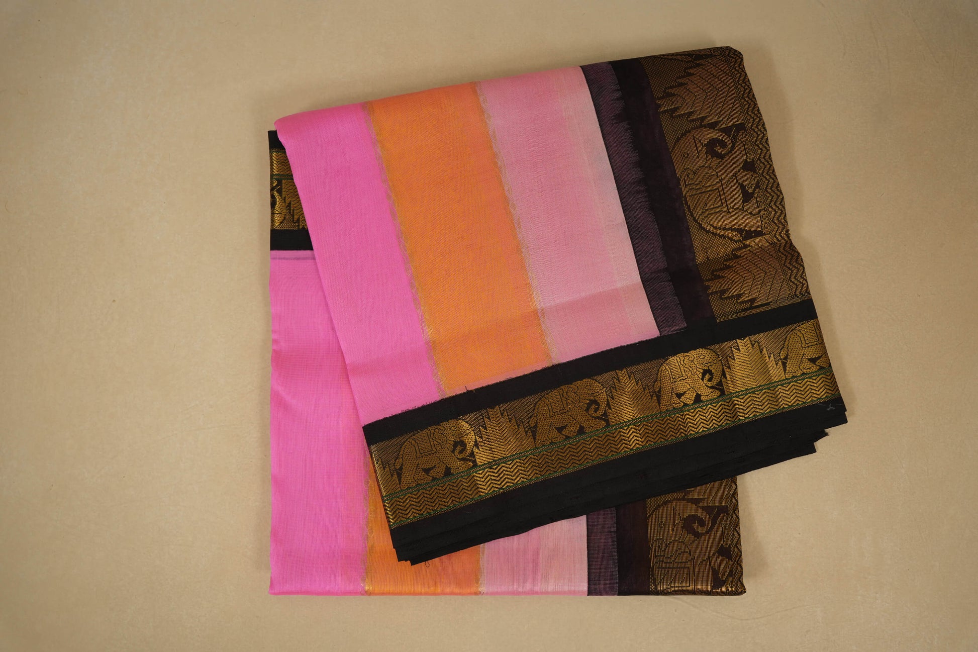 Multi Colour with Black Borders Silk Cotton Saree SS7931
