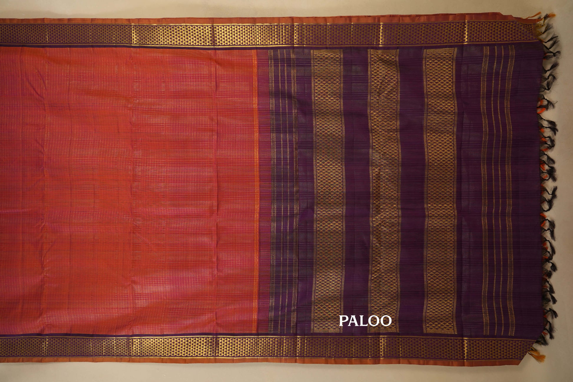 Rust with Deep Purple Borders Ten yards silk saree SS7952