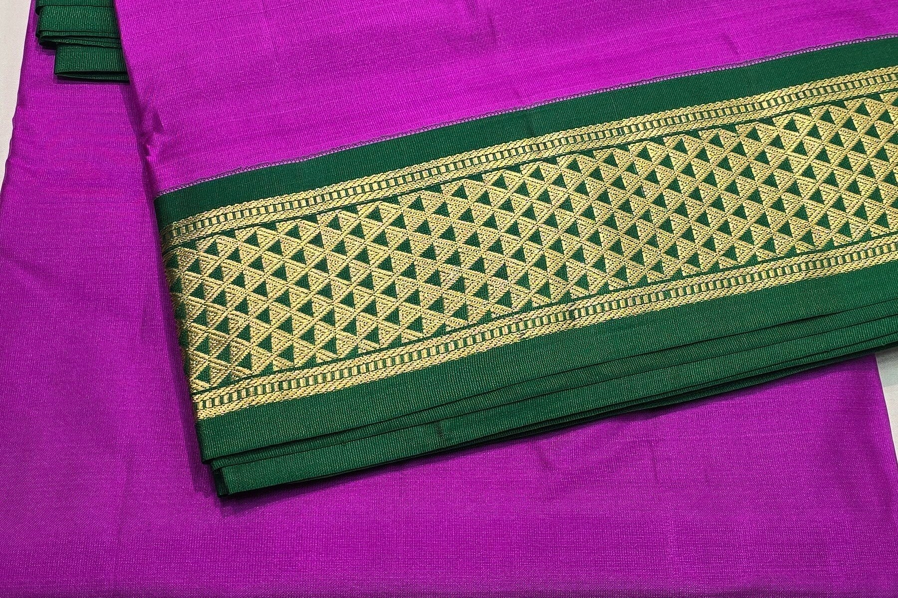 Embrace extraordinary elegance with our magenta ten yards silk saree. This distinguished creation showcases a vibrant yet refined hue that captures attention with its luminous intensity. Meticulously crafted from premium silk, it drapes with exceptional fluidity, creating a silhouette of timeless sophistication. The radiant magenta tone offers a perfect balance of traditional craftsmanship and contemporary allure, ideal for the discerning connoisseur who appreciates both heritage and distinctive chromatic expression.